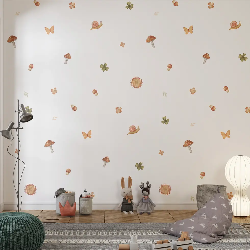 Tags: mushroom wall stickers, forest nursery decor, woodland animal decals, boho nursery decor, nature wall decals for kids, playroom wall decor, peel and stick